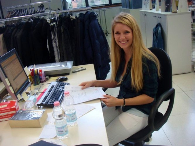 Hard at work with jackets on this particular day. Although you’d think everyone would be in teetering heels all day at Armani, the dress code is relaxed.