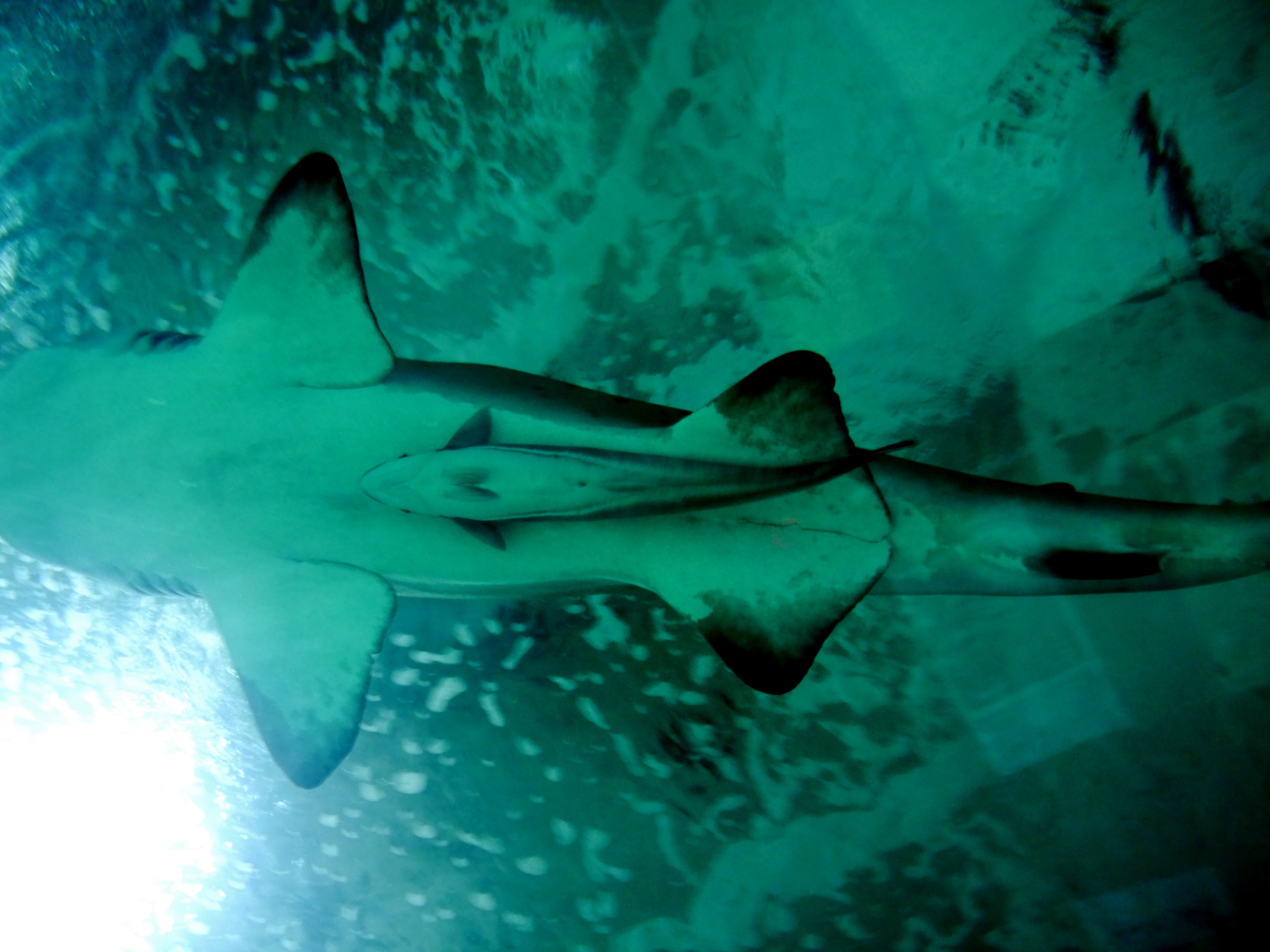 Especially the shark tank. I braved the icy waters off of Cape Town last October to go cage diving with Great White Sharks and it was one of the most invigorating things I have done in years! Here in Valencia the shark tank is a long tunnel you can walk through, with the beasts swimming around you and overhead! The most fascinating sight was the little baby shark that swam around directly under its mother’s belly. Rather more gruesome was the display that explained how a baby shark is produced: several eggs are produced in the shark’s womb, and those who hatch first then eat their siblings (called intra-uterine cannibalism) which leaves only two sharks left alive that are actually born. I also discovered that a shark can live for 9 months without food. Incredible.