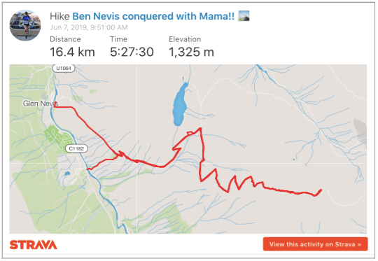 Strava route up Ben Nevis